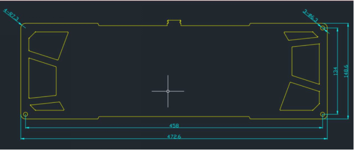 產(chǎn)品為矩形不銹鋼片,具體形狀長 500 mm,寬 160 mm,厚度 1.5mm。兩片單板焊接在一起,中間有空腔;要求產(chǎn)品雙面檢測。主要產(chǎn)品的二維圖紙尺寸如圖 1 所示